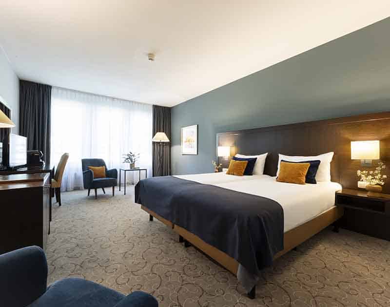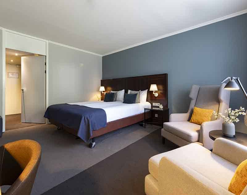 Sie übernachten in einem der 130 stimmungsvollen, geräumigen Zimmer des nebengelegenen Hotelwing oder, wenn Sie noch etwas mehr Luxus wünschen, in einer unserer stilvoll eingerichteten Suiten mit atemberaubender Aussicht über die sanften Hügel von Limburg.