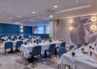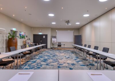 finden in den Tagungsräumen in Kinobestuhlung Platz. In parlamentarischer Form bietet das Hotel bis zu 140 Personen Platz..