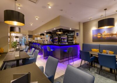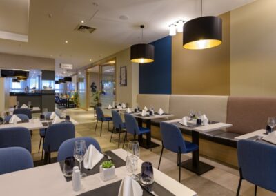 Das Restaurant „Marina Club“ im Mercure Hotel Duisburg City lädt Sie zu einer kulinarischen Weltreise ein. Genießen Sie in einem eleganten, großzügigen Ambiente Gerichte der Region ebenso wie die Klassiker der internationalen Küche aus der Hand von Küchenchef Alexander Klein. Die Speisekarte des Restaurant „Marina Club“ hält auch für Vegetarier und Diabetiker schmackhafte Menüs bereit. Die Öffnungszeiten unserer Küche sind von 16:00 Uhr – 21:30 Uhr. Im diesem Restaurant surfen Sie übrigens kostenfrei im WLAN.