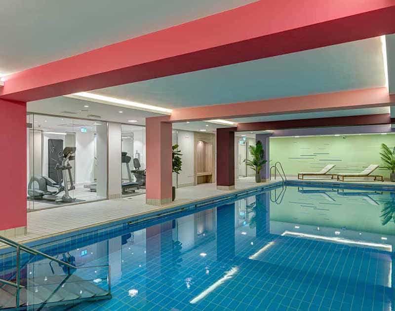 Freuen Sie sich auf die neuste Generation an Fitnessgeräten und den längsten Indoor-Pool aller Hotels in Köln im Workout- und Relaxbereich im Haupthaus.