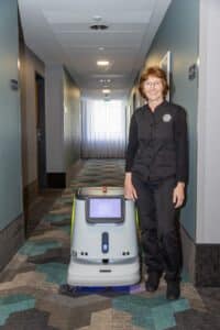 Der Reinigungsroboter Pudu übernimmt im Mercure Hotel Bochum das Staubsaugen auf den Hotelfluren. Mit einer Betriebsdauer von etwa 2,5 bis 3 Stunden täglich sorgt der Pudu CC1 für eine konstant hohe Reinigungsqualität, wobei insbesondere die gleichmäßige und präzise Reinigung der Hotelgänge hervorgehoben wird. Lediglich an den Rändern sind wöchentlich ergänzende manuelle Nacharbeiten erforderlich. Die Möglichkeit, repetitive Aufgaben durch den Roboter zu automatisieren, ermöglicht es dem Personal, sich auf anspruchsvollere Serviceaufgaben zu konzentrieren und damit das Gästeerlebnis weiter zu verbessern. Besonders hervorzuheben ist hier, dass der PUDU CC1 durch eine Konnektivität zum Aufzug selbständig über alle 14 Etagen des Hotels die Reinigung der Flure vornimmt und so eine massive Entlastung des Housekeeping bei gleichzeitiger Qualitätssteigerung in der Reinigung darstellt.