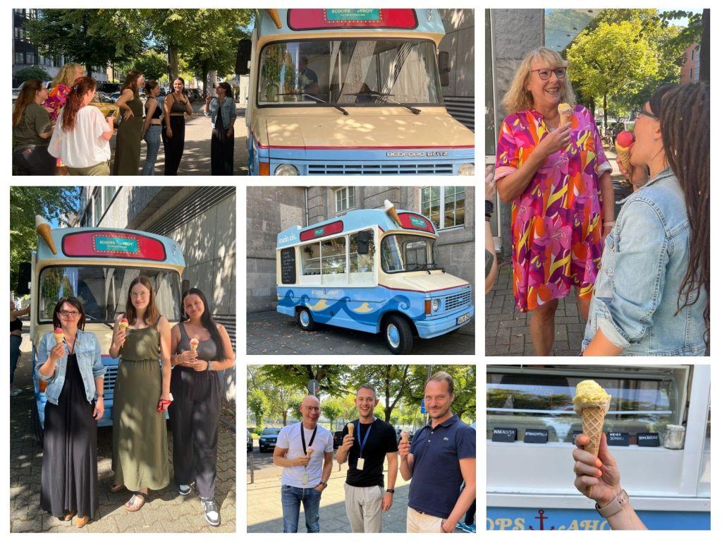 Letzte Woche gab es in der Kölner Zentrale und im Office in der Sedanstraße eine erfrischende Überraschung: Bei strahlendem Sonnenschein und 30 Grad wartete ein Eiswagen vor den Gebäuden, an dem sich alle Mitarbeitenden eine leckere Abkühlung holen konnten.
